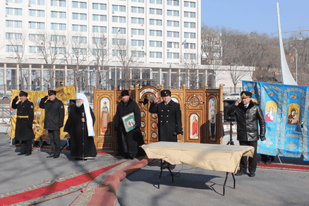 Передача иконостаса на крейсер Варяг во Владивостоке, 2014 год
