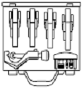 В жестяном чемодане, предусмотрено 6 пазов для хранения обжимных клещей. |