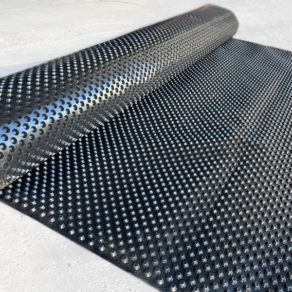 Профилированная геосинтетическая мембрана представляет собой изделие, выполненное преимущественно на базе высокоплотного полиэтилена HDPE. Этот материал обеспечивает надежную гидроизоляционную защиту стен и фундаментов. Помимо использования для гидроизоляции фундаментов и стен зданий в гражданском и промышленном строительстве, геосинтетическая мембрана с